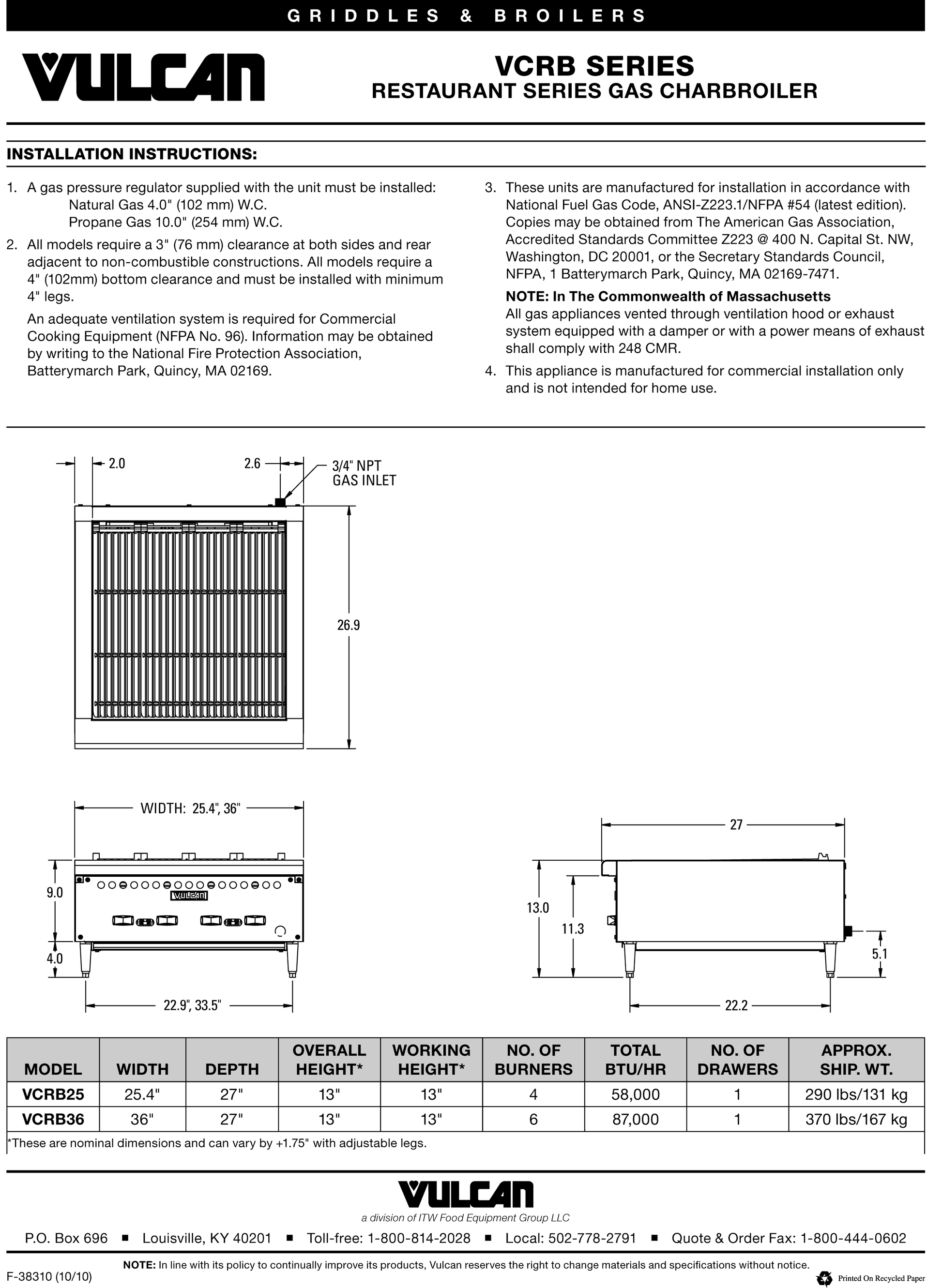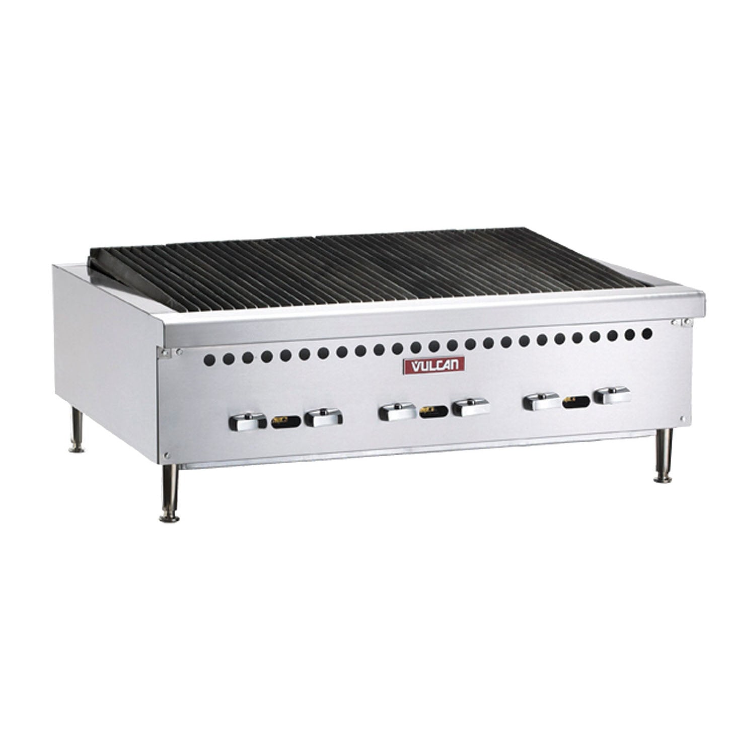 - One 14,500 BTU/hr. cast iron burner for each broiler grate