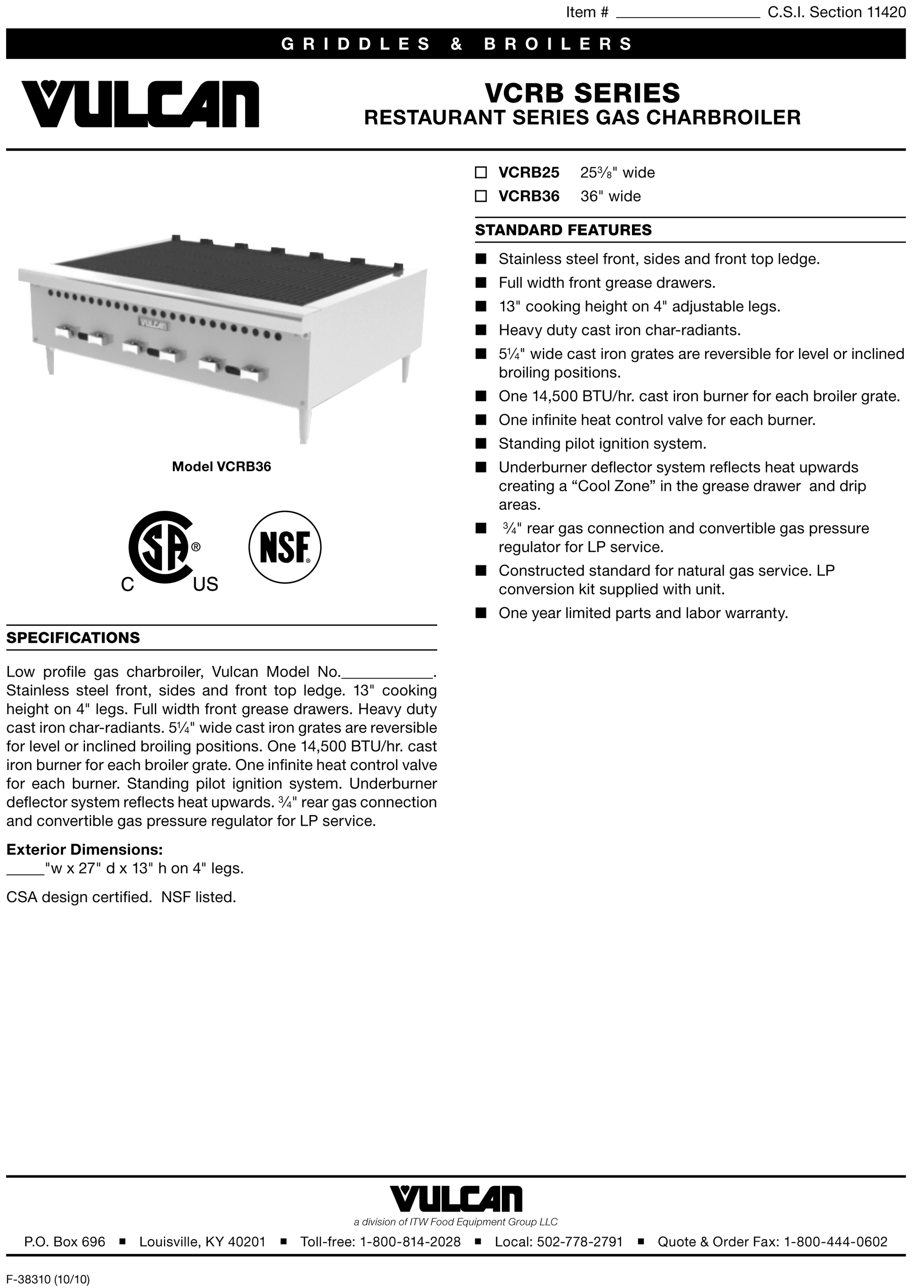 | VCRB25 | Vulcan Charbroiler |