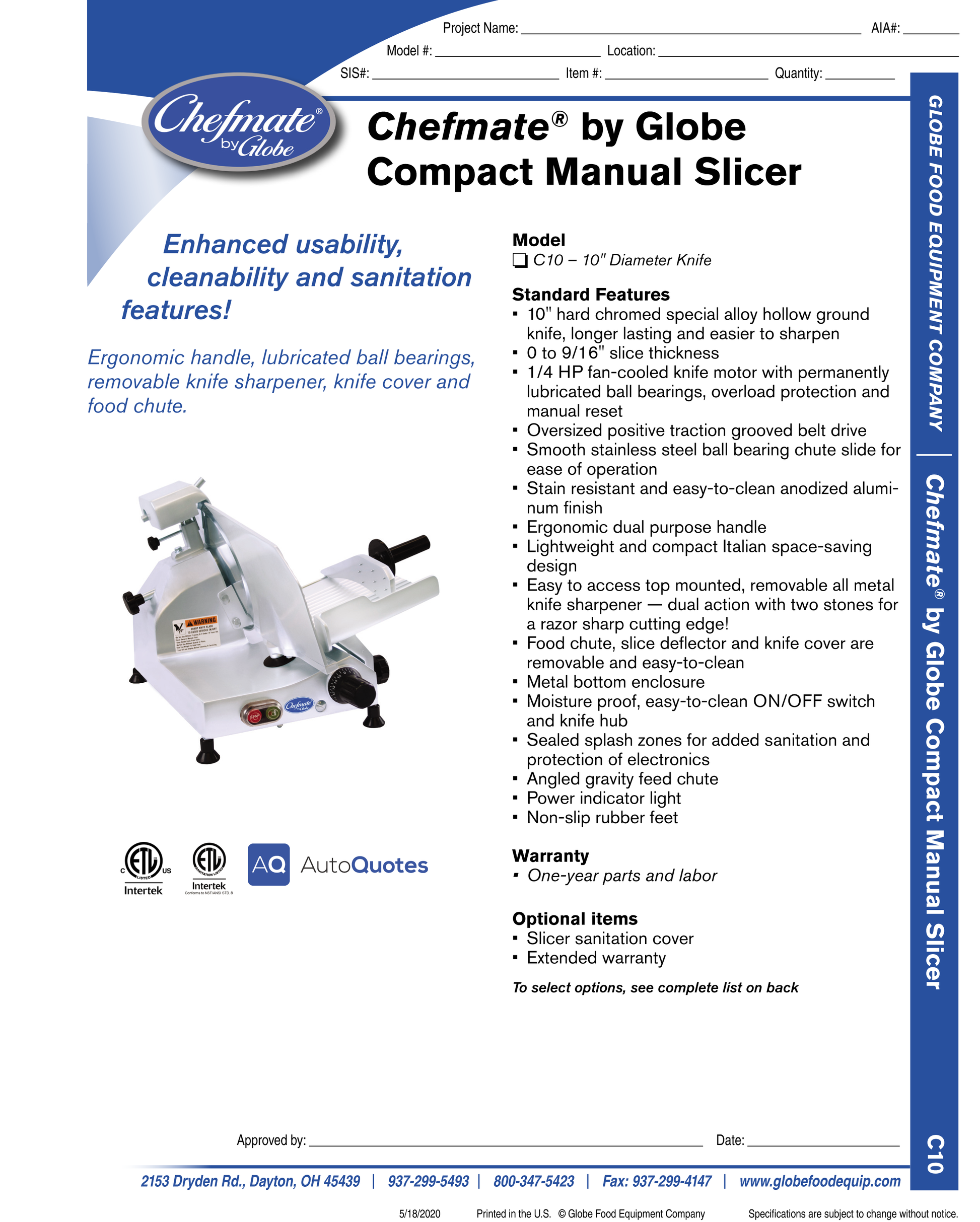 | C10 | Globe Compact Manual Slicer |