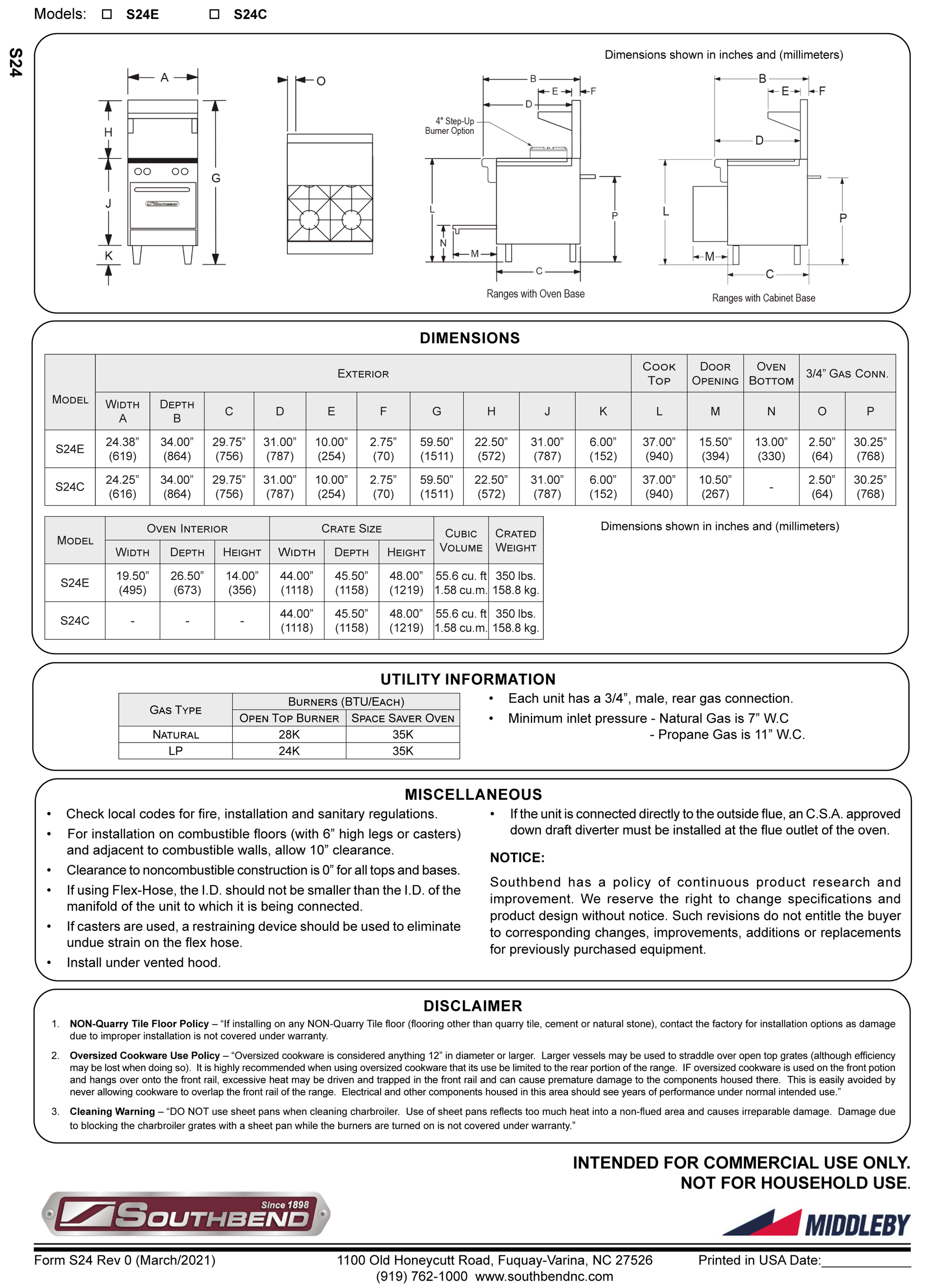 | S24E | 4 Open Burners, Space Saver Oven |