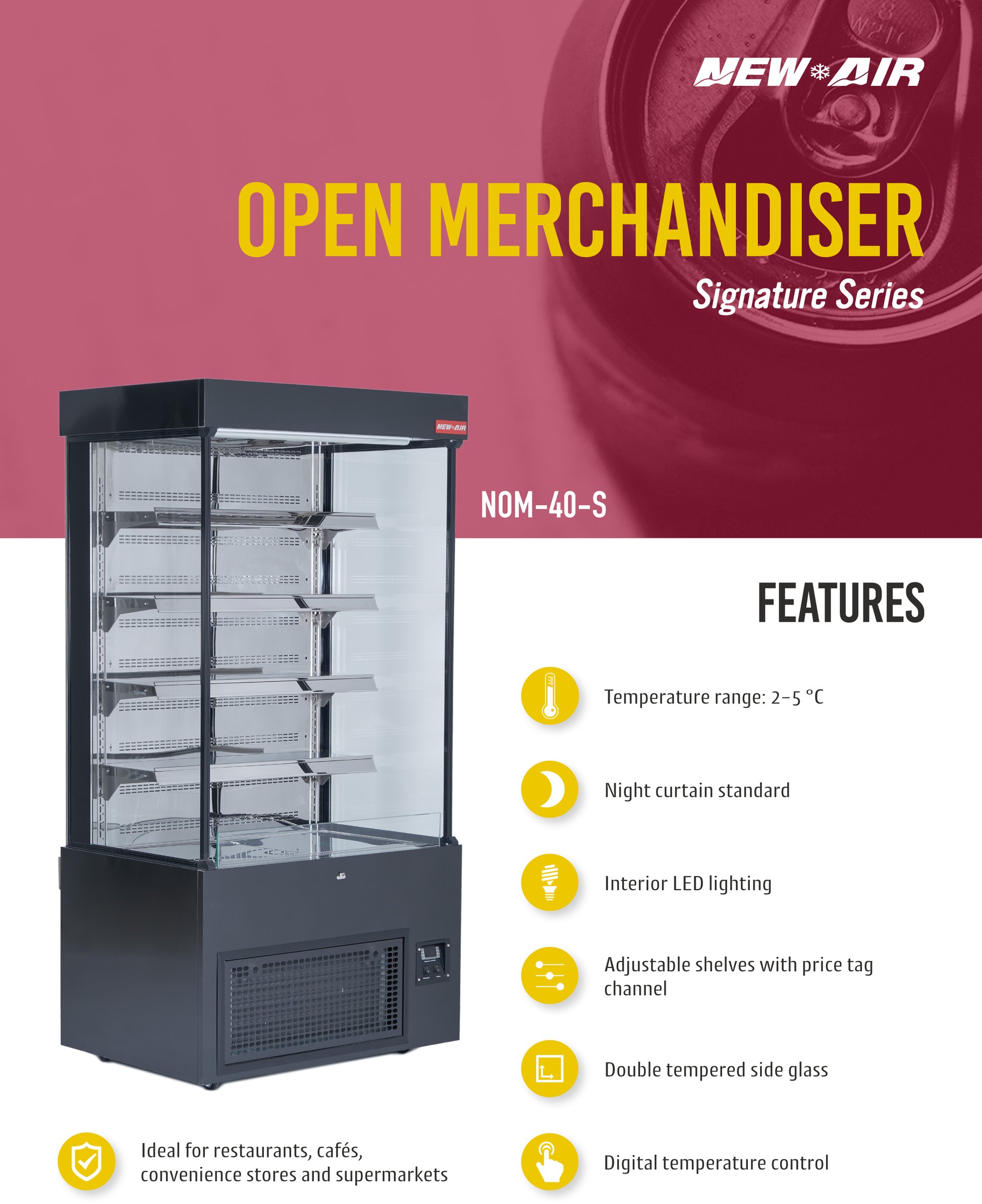 - Ideal for restaurants, cafés, convenience stores and supermarkets