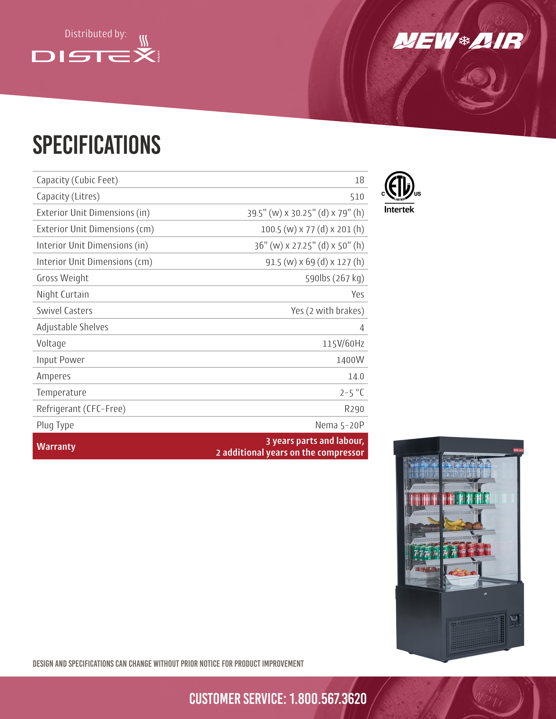 The New Air NOM-40-S is a floor model chiller with a sleek, straight design that is 39.5" wide and gives you 18 cubic feet of refrigerated space. It has interior LED lighting and adjustable shelves. It's perfect for displaying beverages, cakes, or other goods.