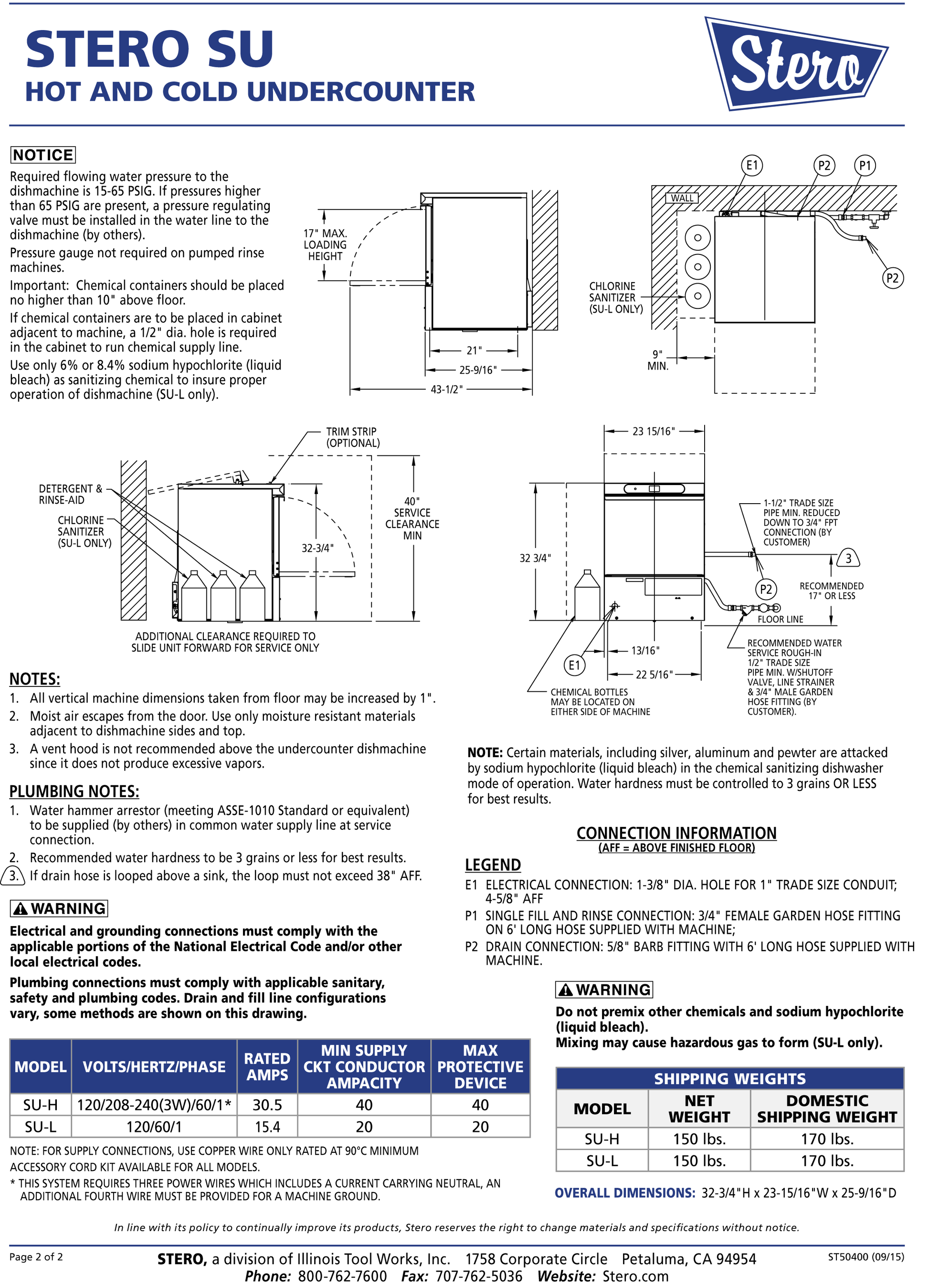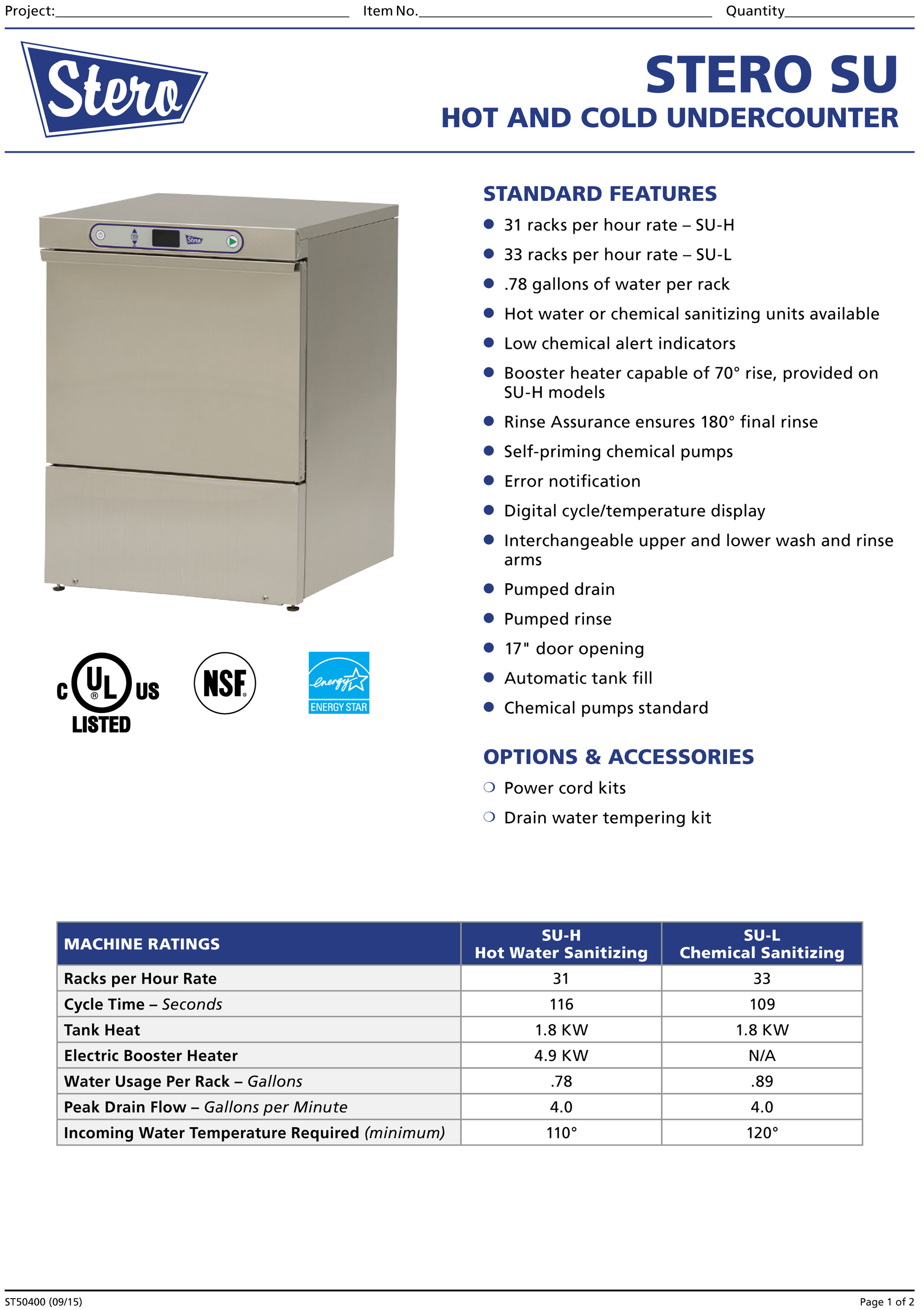 | SUH | Stero by Hobart Undercounter Dishwasher |